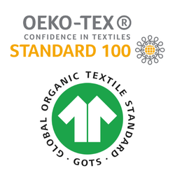 Nästan alla våra textilier är OEKO-TEX- samt GOTS certifierade, leta efter certifieringen under produktbeskrivningen på vår e-handel samt på produktförpckningarna! Vi hjälper dig skapa en säker start i livet för din lilla.